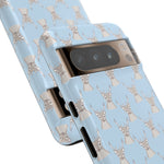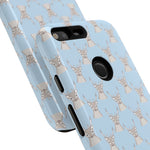 Introducing our stunning Phone Case, designed for those who appreciate artistry and functionality. This piece encapsulates a playful vibe with its whimsical deer pattern set against a serene blue backdrop, perfect for adding a touch of charm and personality to your everyday tech.