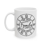 This ceramic mug features a quote about family and love, adding a heartwarming touch to your morning coffee routine. Perfect for family members, loved ones, or anyone who values the importance of family bonds. Ideal for gift-giving on occasions like Mother's Day, Father's Day, birthdays, or holidays.