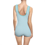 Retro Women's Vintage Swimsuit - Aqua Checkered Design